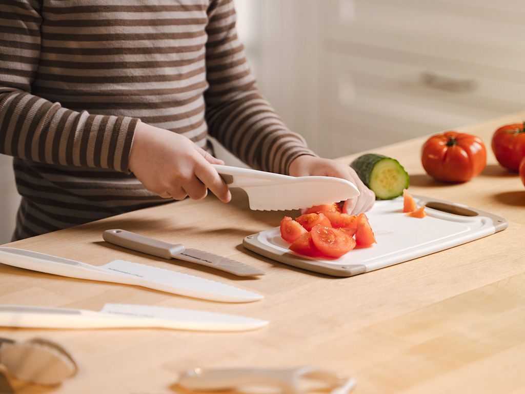 Tato kompletní sada promění vaření v napínavé rodinné dobrodružství. Obsahuje dětské bezpečnostní nože, vlnkový kráječ, škrabku, kleště a prkénko s protiskluzovou základnou, které zajistí, že se vaše malé hrdiny naučí kuchařským dovednostem s jistotou a péčí. Nože jsou dostatečně ostré na krájení masa, ovoce a zeleniny, ale ne dost ostré na pořezání prstů, což je činí mnohem bezpečnějšími než tradiční nože.