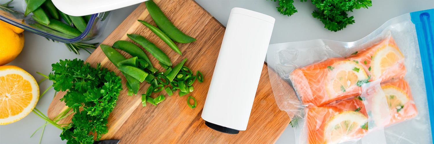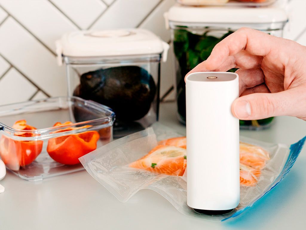 Většina z nás se také pokusila používat vakuové balení, protože to je zdaleka nejlepší způsob, jak uchovat jídlo déle čerstvé bez zamrazení – a dokonce i při zmrazení je vakuum jasnou výhodou. Ale používání běžného vakuového zařízení není moc pohodlné. Potřebujete mít velký vakuový stroj, který musíte najít ve skříni a poté zapojit do zásuvky. Potom byste museli najít své vakuové sáčky a použít stroj k vytvoření vakua a zapečetění sáčku tím, že plast roztavíte. Tyto stroje jsme měli sami – ale nakonec zůstaly ve skříni, protože byly tak nešikovné a obtížné na používání.