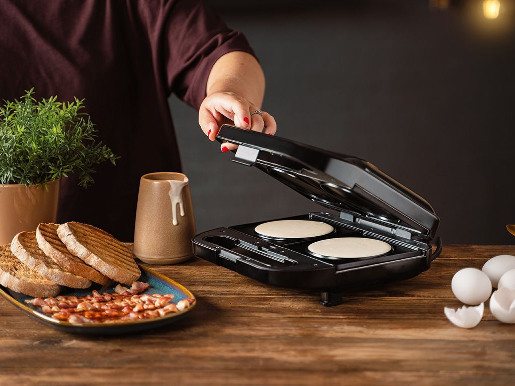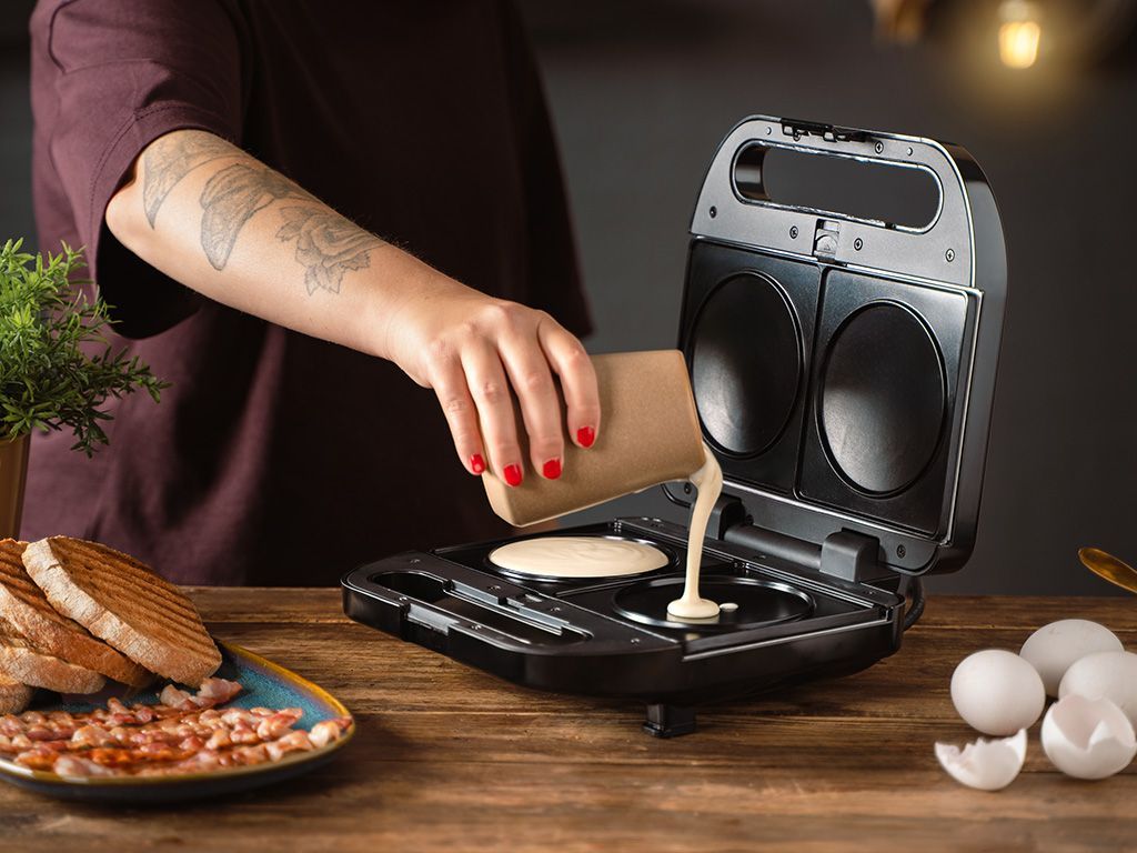 Použijte ji na zlatavé palačinky, perfektně smažená vejce nebo opečené bagely - přesně tak, jak je máte rádi. Nepřilnavý povrch umožňuje snadné uvolnění jídla, aniž by se lepilo nebo lámalo - i u lepivých surovin. Perfektní, když chcete něco teplého, jednoduchého a uspokojujícího bez námahy.