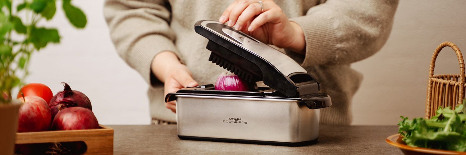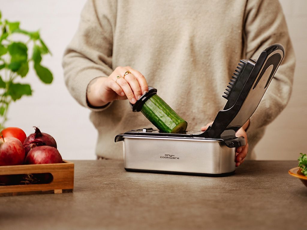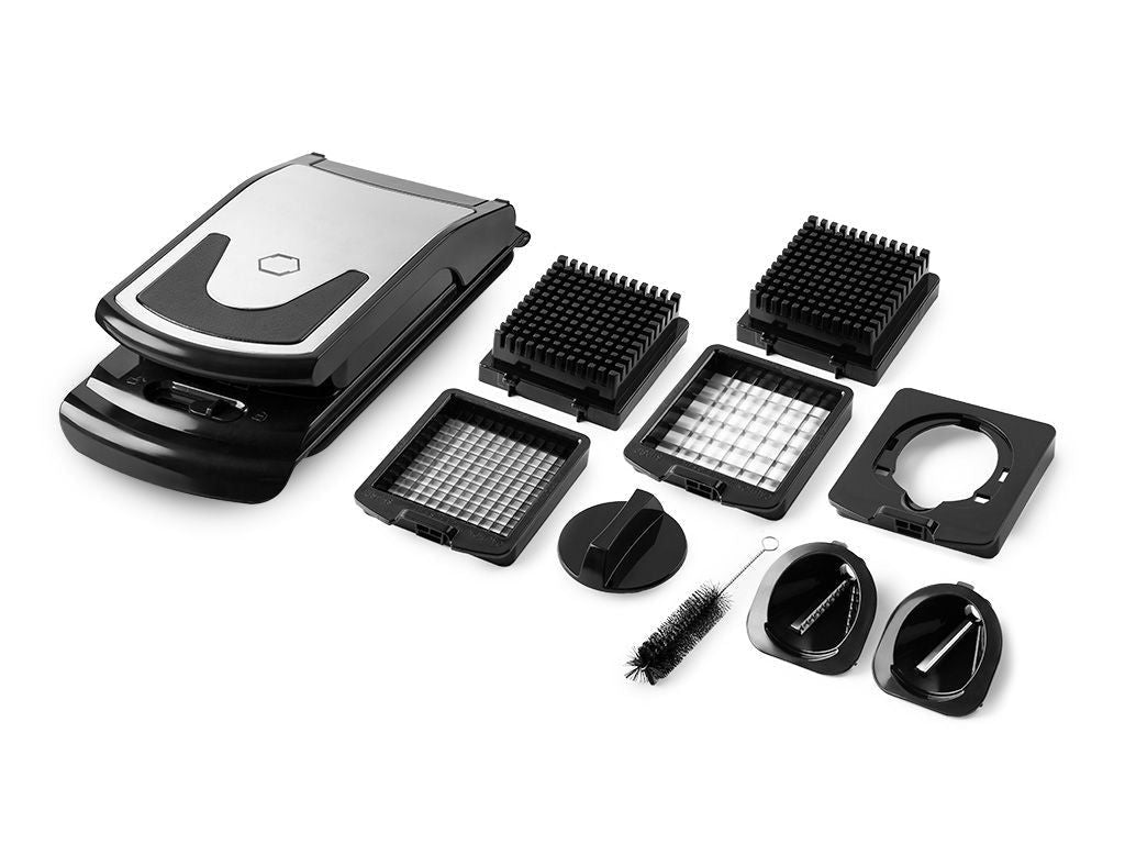 Menší mřížka je ideální pro cibuli, papriky a jiné drobné suroviny, které rychle a rovnoměrně nakrájí. Větší mřížka je perfektní pro brambory, mrkev a další zeleninu – ideální pro guláše nebo domácí hranolky.